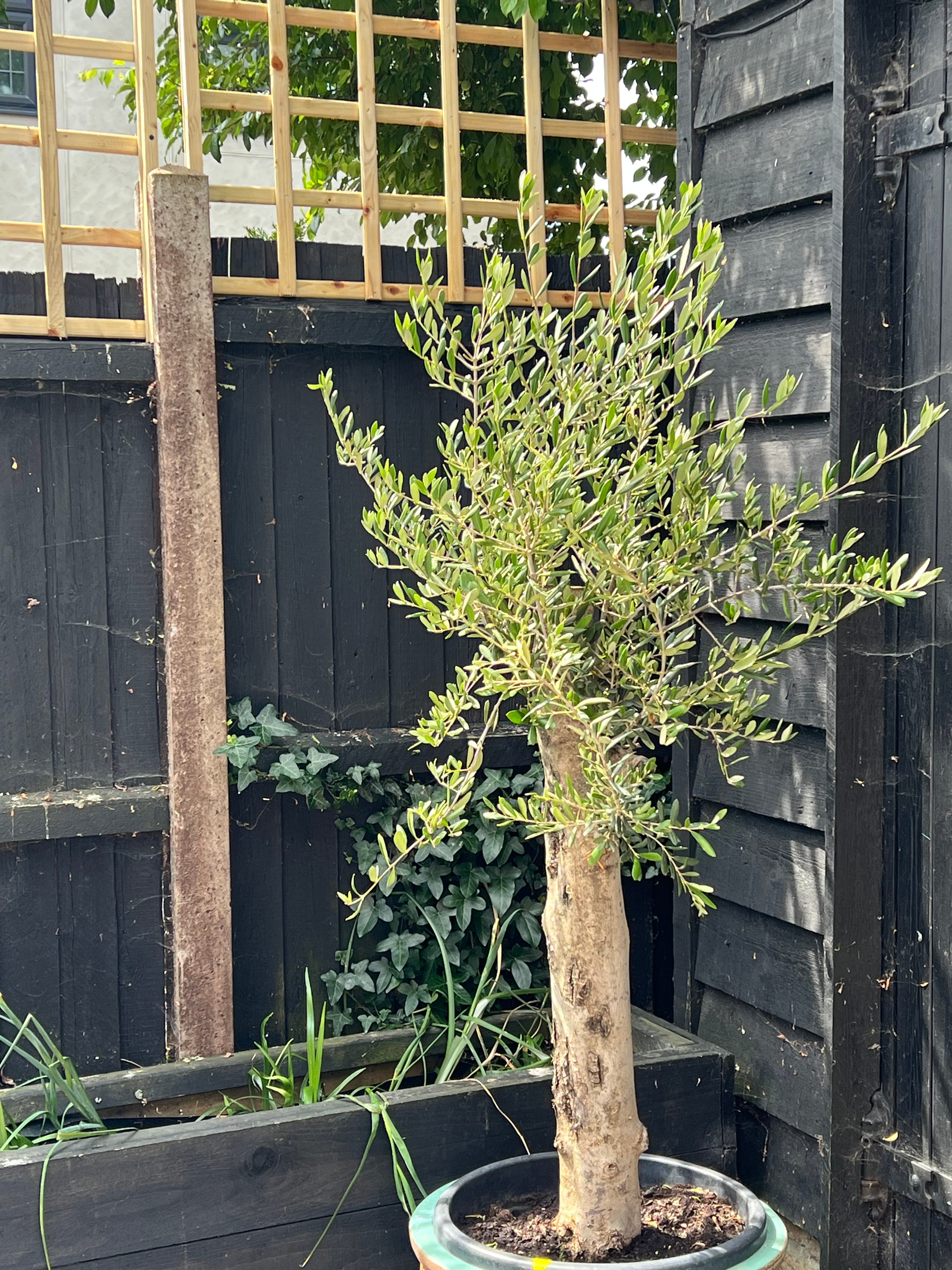 I’ve had someone round to look at the patio but they didn’t come back to me. It houses my large dragon pots, one of which has in it the most expensive plant I have ever bought. A large Olive tree. I’ve just taken off the fleece that was protecting it.