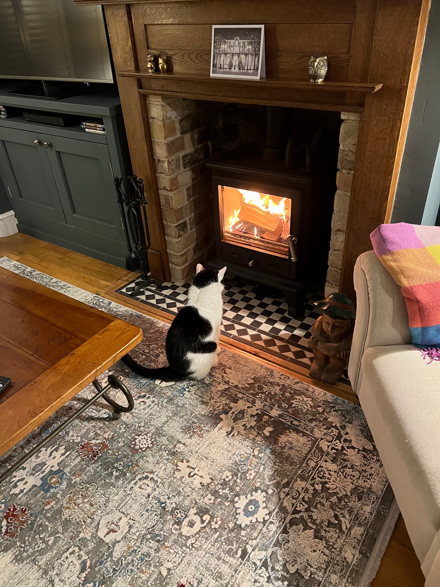 Of course the biggest thing was that Dandelion died eight months after I moved in. He had been in my life for nineteen years. But I am so proud of him that he settled in so well, even learning to use the cat flap. I was worried his paws would get splinters from the rough wooden floors. Blind towards the end, he still found his way around. In many ways I think he was happier, preferring the smaller house. In the old house he used to cry if he couldn’t find me, too lazy to search all the rooms. He particularly liked the fire and would come up and nudge me asking me to light it for him.