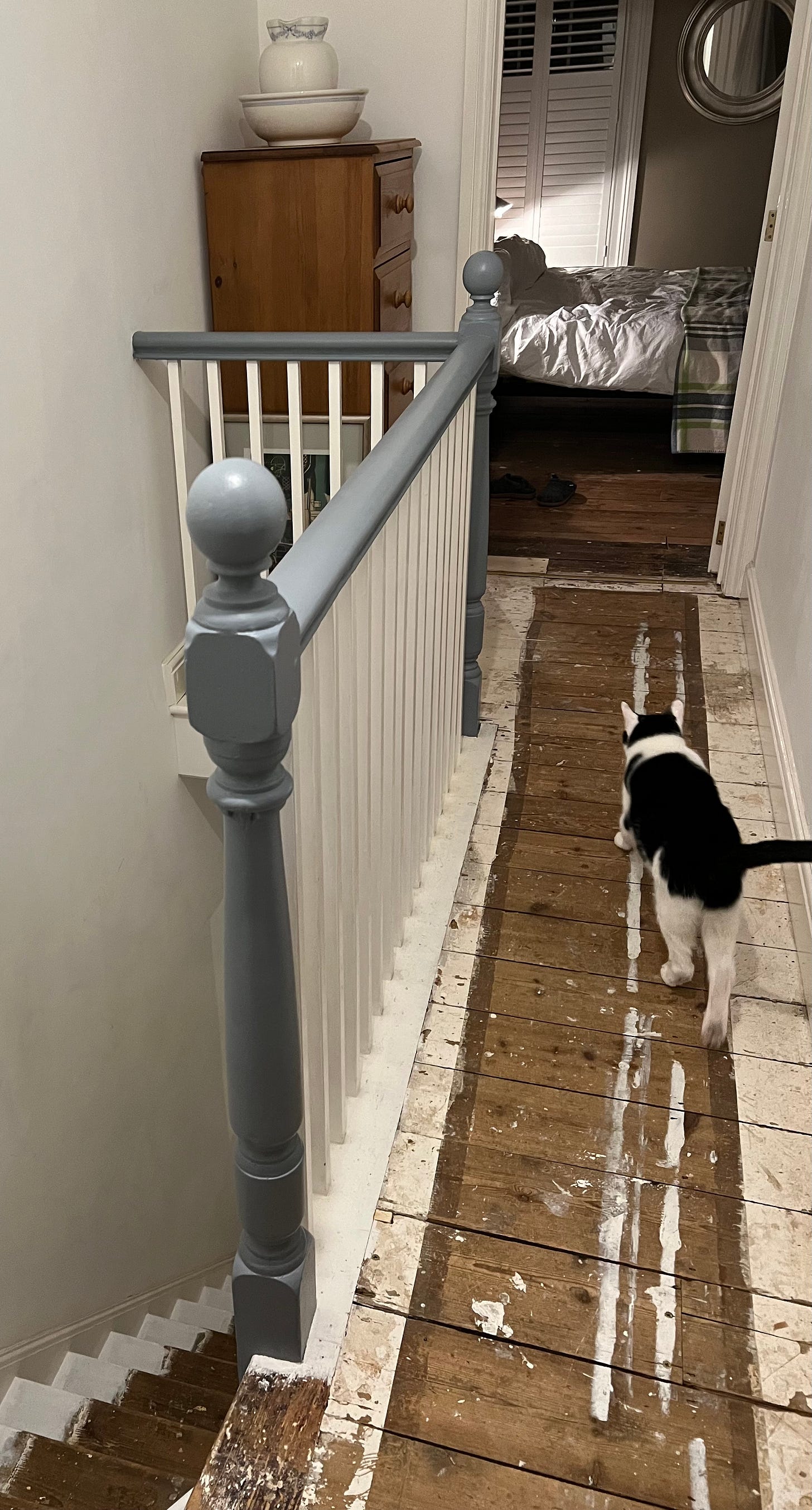 I’ve discovered so much about the house on way. It’s been completely remodelled over the decades, with walls removed and new window openings created. The fireplaces have been bricked up and then revealed again. The dinning room one still bares the scars where the bricks were chipped out to make it into a cupboard. The old gas mantle pipes are now evident. Obviously the central heating was put in a long time after the house was built. There are boxed in pipes in almost every room meaning the rooms have lost their symmetry. There’s also lots of exposed pipework. I wish the previous owner had chased them into the walls before they skimmed them.