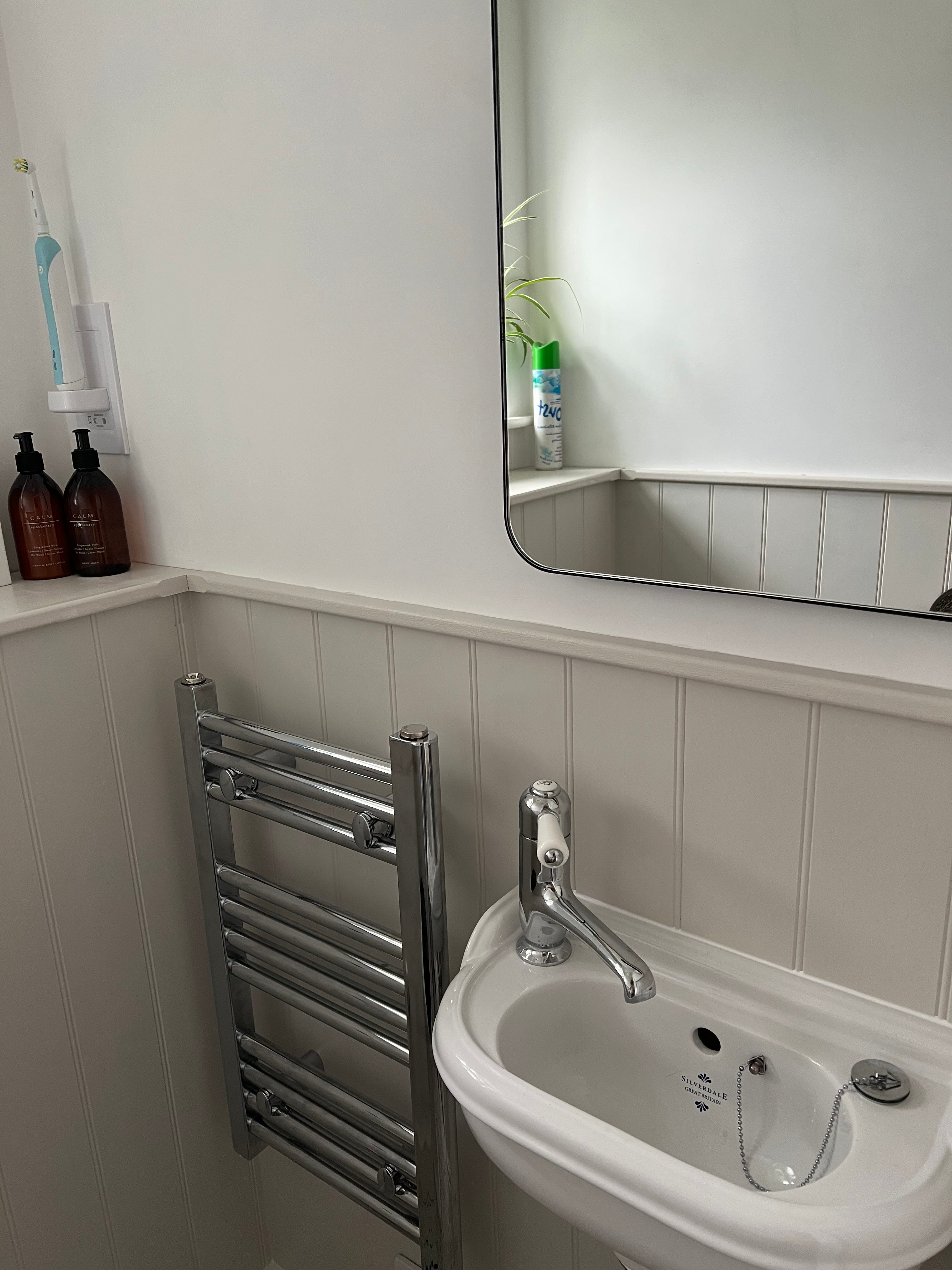 I have really enjoyed having a log burner. I must get myself a nice set of tools to go with it. I have erected a log store outside. The kitchen is lovely. I made the beautiful vintage fireplace in my bedroom look even better by blacking it to pick out the details. I like the study so much, with its built in bookcase, that I decided not to move the bathroom upstairs like I originally planned. I refurbished the bathroom but didn’t completed re-do it. Just replacing the sanitary ware, taps, radiator and floor. Of course in recent weeks I have made the upstairs toilet bigger and completely replaced this. I finally added the mirror this week. But really most of the work has not been that extensive.