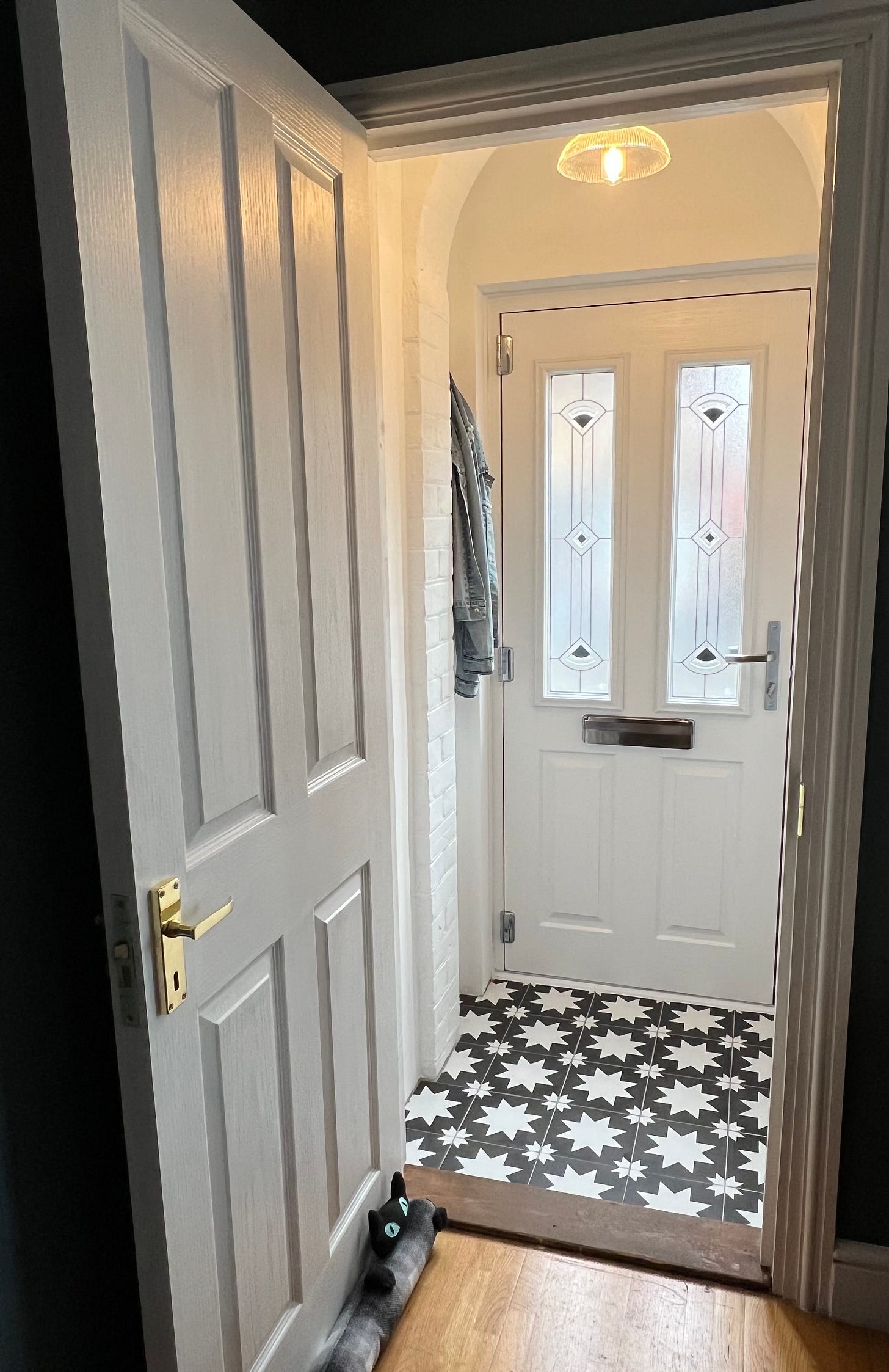 The biggest issue has been how cold it is. And I expected this. It is an EPC E after all. I’ve capped off the chimneys, installed more loft insulation and put in the a false ceiling with insulation in the hall. During this process we found the original window above the front door, with its war glass, which had been covered over by a sheet of plywood. I have replaced all the ancient lights with low energy lighting. I replaced the external doors with super energy efficient composite doors and the window in the bathroom with a triple glazed one.